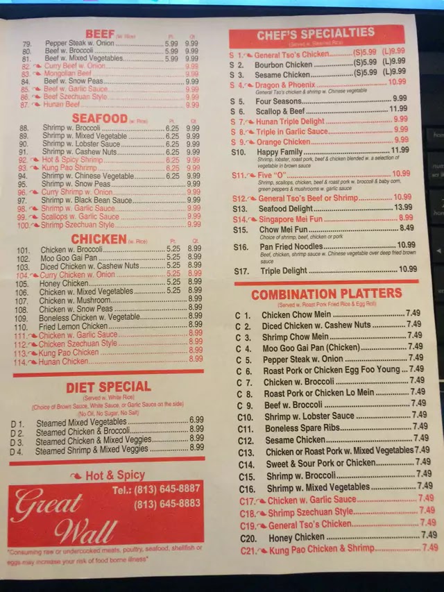 If you’re browsing the Great Wall Chinese Menu at 3424 Tampa Rd in Palm Harbor, you’re in for the kind of comforting, no-fuss Chinese food that always hits the spot. Right away, the variety stands out. There’s a solid lineup of classic appetizers - crispy egg rolls, dumplings, and crab rangoon - perfect for sharing while you figure out the main event.